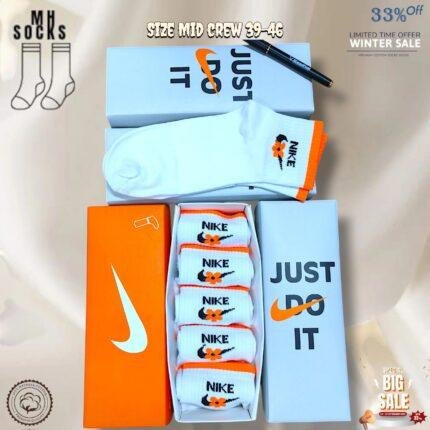 Nike WHITE Mid crew Socks Combo Pack (5 Pair in 1 Box)